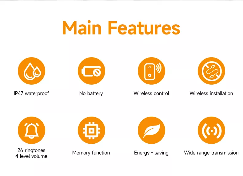1. Bel pintu dengan peringkat tahan air IP47;